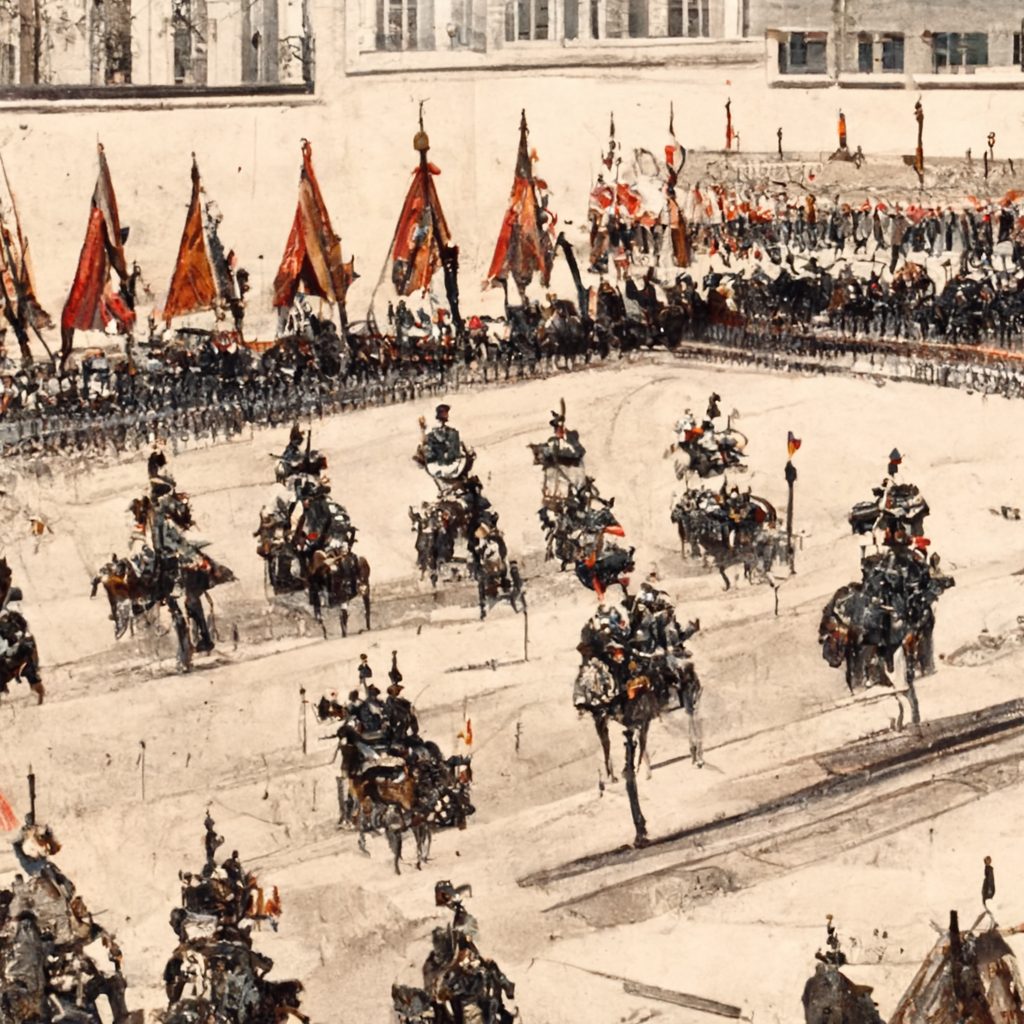 They marched on foot or in formations accompanied by military wagons carrying their equipment.